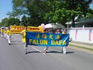 就在我们等待出发的时候,这家报社的一位记者看到我们的黄T恤主动来采访。我们及时讲清法轮功学员被残酷迫害的真实情况,解释什么是法轮大法,并给了他大法资料。他告诉我们他回去后要仔细阅读并写出真实的报道大法的文章明天发表。感谢这位记者的善念。更巧的是,不一会香宾另一家报社的主编走上前来和我们打招呼,这位编辑今年一月份经过仔细地调查阅读严肃正面地报道了大法,之后有一些美国人加入了修炼。今天她看到我们壮大的队伍,说,“现在是我写第二篇法轮功故事的时候了。”我们感到天象变化太快了,只要我们用真心做对大法有利的工作,师父就给我们创造条件。现在是记者主动找我们。