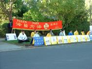 当得知15名女大法弟子在万家劳教所被残害致死的消息之后,墨尔本学员于7月4日上午10点在中国驻墨尔本总领馆门前举行了新闻发布会,向世人揭露江泽民流氓集团的残暴以及中国法轮功学员随时都有生命危险的紧急情况。学员们分别于10点、11点和12点发正念铲除邪恶,在寒风中炼功、静坐。有不少过路行人停下来看图片版、索要资料。一位来自广州的中年妇女非常同情国内学员的遭遇,对我们的行动表示钦佩。一位西人中年男子在发布会结束后仔细地询问法轮功的情况。