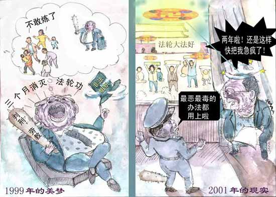 漫画:1、江泽民的美梦破灭;2、人权恶棍