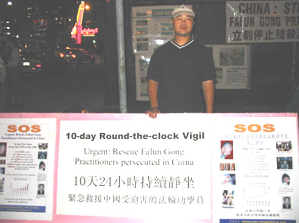 在八月十五日傍晚举行的新闻发布会上,林宣读了自己静坐声明:面对失去的二百六十多名宝贵的生命;面对上千名被无辜投入精神病医院的正常公民;面对难以计数的法轮功学员因不愿出卖自己的良知而被迫流离失所;面对江氏流氓政府还在疯狂的打压正义和粉饰太平,我们有的已绝不仅是眼泪和等待。我的中华同胞啊,当我们热爱的国土被邪恶肆虐、当人类珍贵的善良被暴政践踏,我们怎能还袖手旁观,怎能不发出正义呼声?因为明天,谁知同样的厄运会不会降临到你我的亲朋好友的头上、眼前?今天我开始了在中领馆前的连续静坐,为的是揭露江氏集团镇压的残暴,向国人发出我由衷的祝愿:愿真善忍在中国发扬光大!愿正义在中国得以保全!