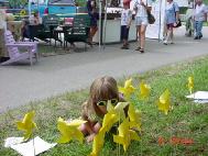 我们做的万字风车深受欢迎,一些别的展位上还特地插着我们的小风车作为装饰。