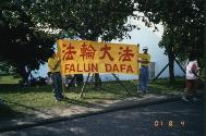 在事前开会时是要我们中有一位做主持人用英文讲解,另一位示范动作。我被分配到示范动作,于是当天晚上便和主持人一同预习外文教功的事项。但因为我没以英文套过功法,感觉很新鲜,因此心总稳不下来,有点不严肃。结果第一天因台风取消活动,第二天由宜兰两位负责人直接上场,透过法文翻译教功。通过这一事让我了解到洪法的严肃性,以及我所存在的对上台教功的虚荣的心,原来我是如此看重这种虚荣,即使在大法活动中。