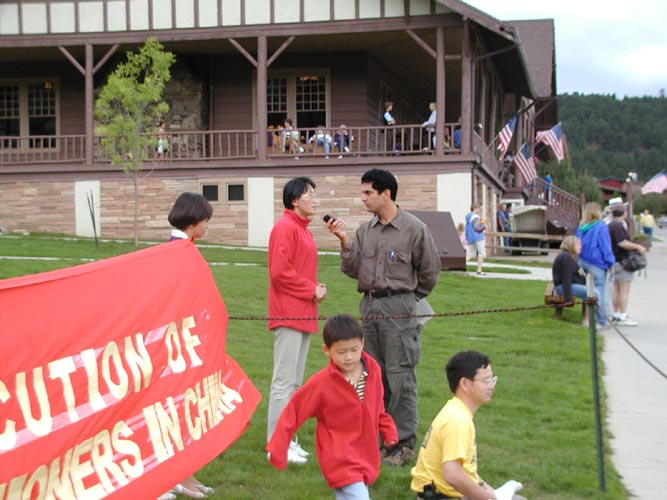 在晚宴结束前,两位弟子与一名本州的联邦参议员及另一名联邦众议员交谈,并递交了真象资料。交谈中并谈到无条件释放滕春燕女士的呼吁和江泽民政府对于科罗拉多州法轮功修炼者的干扰。晚宴中两位弟子还向许多赴宴者派发了“SOS紧急救援”真象传单并通过交谈使许多人了解了真象。