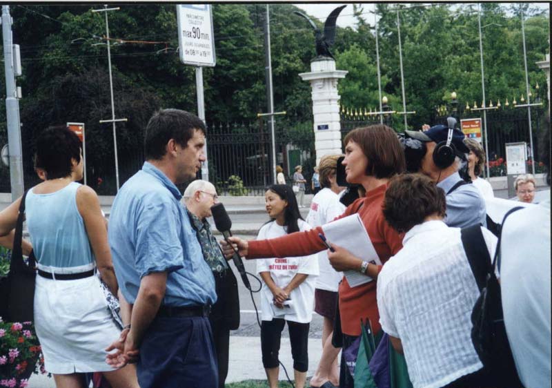 来自社会党的日内瓦议员罗德克先生说:我来这儿的目的是想提醒大家,民主政府的国家包括瑞士,怎么能对象中国这样不讲人权的国家不表态?!如果中国(江泽民)政府希望在国际上保持一定的地位,我想它也应该象别的国家一样,做到最基本的要求:重视人权。他说:我祝贺你们这次的步行活动成功。希望这次活动能提醒人们,人权是不分国籍和种族的,也是每一个国家不能忽略的。