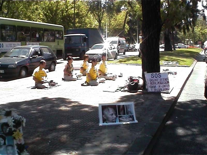 【明慧网2001年8月19日】七月中旬,西班牙修炼者在中国使馆前举行五天的守夜活动。他们发出了SOS紧急救援的信息并把法轮大法受