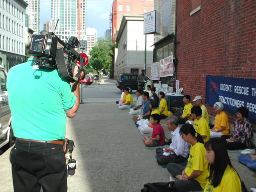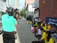 | 周末更多学员加入静坐 | NBC电视台进行采访 |