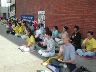十八日是固定发正念的时间,学员们在各地弘完法后,象以往一样又聚集在中领馆前,集体炼功,齐发正念。NBC电视台进行了采访并做了相关报导。世界日报记者在静坐第一天即进行了采访。