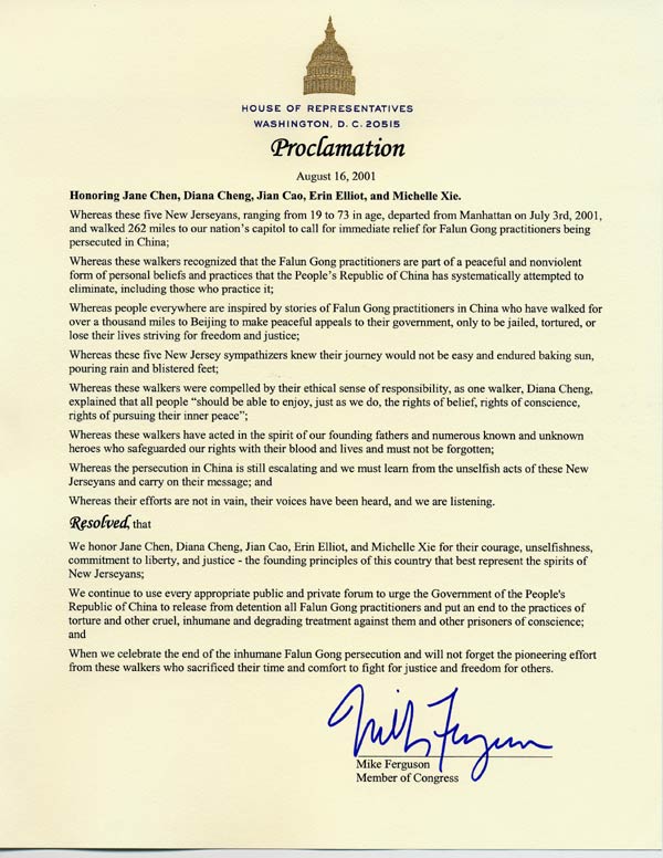 而目前镇压在中国还在升级,我们必须向这五位SOS步行者学习他们无私的精神,秉承和继续他们的努力。我们会用所有合适的官方和私人的渠道要求中国政府释放被关押的所有法轮功学员,停止对他们和其他良心犯的残忍、非人道、下流的折磨。