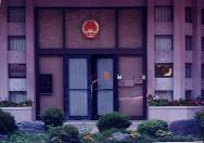 学员在大使馆拒收信的情况下,将声明信贴在大门上。