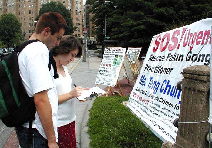 过路行人签名支持援救法轮功学员
