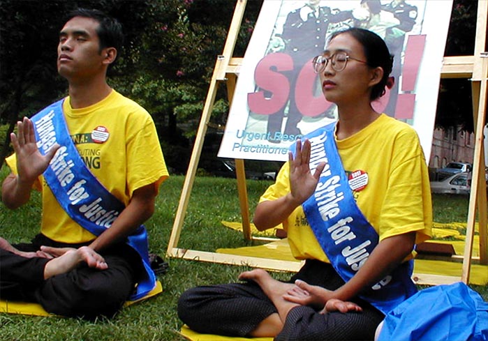 声援马三家绝食学员 10美国大法弟子中使馆前绝食抗议