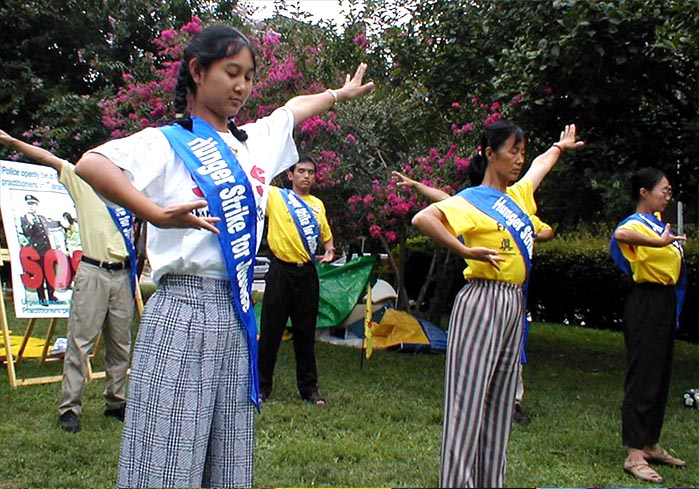 图片:6名大法弟子在中国驻华盛顿大使馆前绝食请愿