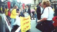 六名英国女弟子在中国驻伦敦大使馆门前绝食请愿