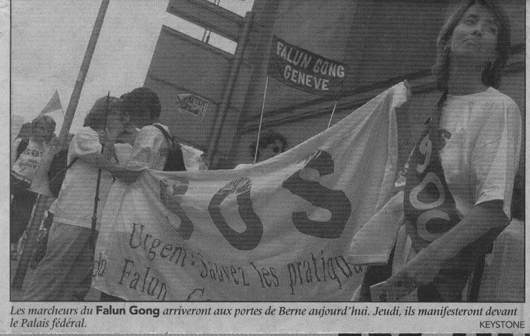 在两周内,他们组织从不同地点出发——日内瓦(GENEVE)、巴塞尔(BASEL)、圣加仑(SAINT-GALL)、温特吐(WINTERTHOUR)、吐恩(THOUNE)和苏黎世(ZURICH),计划在七日内抵达伯尔尼(BERN)。上星期四自日内瓦出发的20多位修炼者,昨天晚上抵达弗赖堡,这将是他们抵达目的地之前的最后一站。瑞士修炼者认为,抵抗的时间到了。一个修炼了四年的修炼者科亚.李.J说:“我们希望同时聚集伯尔尼,为了向瑞士政府揭露在中国正在进行的对法轮功的镇压。”让.皮埃尔补充道:“我们希望瑞士政府在面对这样的形势下,选定一个明确的立场。”