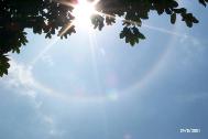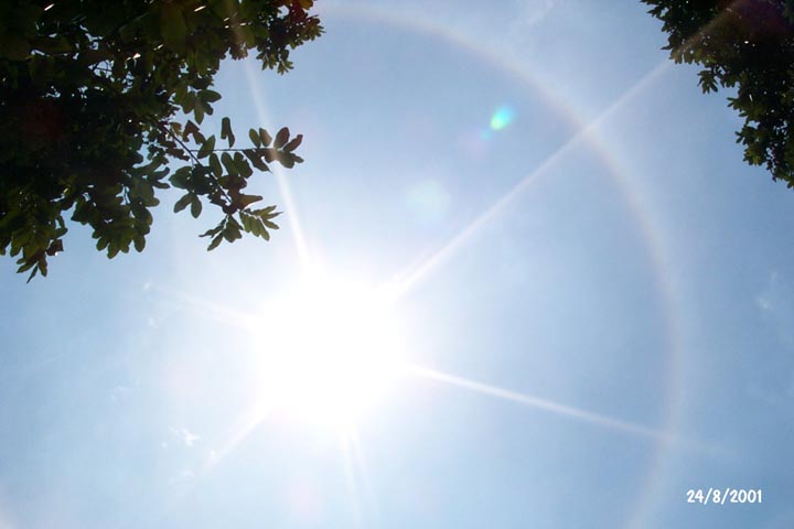 【明慧网2001年8月26日】8月24日下午1:40左右,新加坡上空的太阳周围出现一个五彩的大光环,一些大法弟子看到太阳中心有一个巨大的卍字符,整个景象构成一个大法轮。8月25日的《海峡时报》、《今日》报导了这一奇景并刊登了照片。