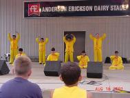 【明慧网2001年8月30日】8月18日,来自爱荷华与明尼苏达州的十几名学员在爱荷华州游园会(State Fair)上作了将近40分钟的功法表演,并在游园会内外炼功洪法。时值爱荷华州府得梅因(Des Moines)市宣布法轮大法周。在功法表演时,负责解说的学员以通俗的语言向观众介绍了5套功法,修炼的概念,大法在世界范围内的洪传及受到的褒奖,同时以实例讲诉了中国江泽民政府对法轮功修炼者的残酷,呼吁善良的人们伸出援手。