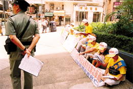 【明慧网2001年8月30日】香港网络邮报2001年8月27日报导,昨天,绝食抗议的法轮功成员在中央政府联络办公室外继续抗议。在此之前一天,他们被控阻碍交通而被捕。一位立法委员要求警察就此次逮捕做出解释。