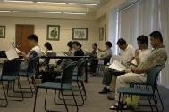 我们还派发了有关大法的韩语文章和刊物,比讲座更详细地解释了真相的一些方面。有些人表示了很大的兴趣,并在图书馆外购买了书籍和录象带。这次讲座后有三人加入了我们在一个学员家里举行的韩文的李老师九天讲法班。第二天,有两人坚持下来,看起来是下了决心了。预计第三个人可能以后会重新加入。