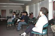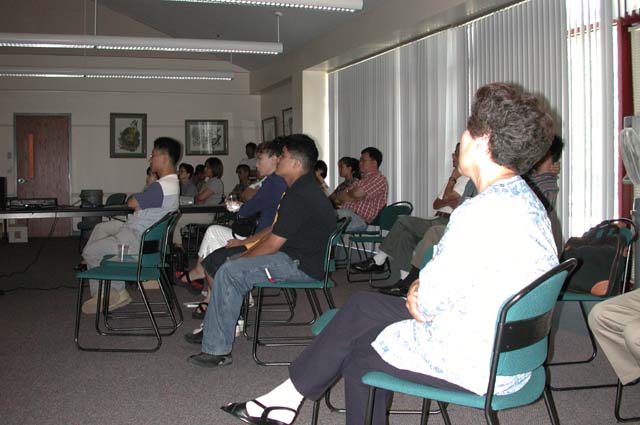 在做准备工作的时候,我们用扩音器播放了普度和济世。一切顺利进行。大约有28人参加了讲座,其中大约有三分之一是认识的学员。在放映幻灯时,一对夫妇问为什么中国政府迫害法轮功,也许他们有什么理由。(这也是美国人的一个普遍态度)大家公开地自由提问,主持人很好地回答了他们所有问题。我们采用了许多幻灯片详细地去讲清真相。我们播放了部份李老师教功录像来做功法演示。我们用了李老师教功录像的原带,因为我们觉得这是我们在这种情况下所能提供的最好展示。