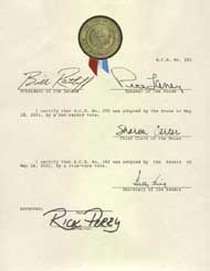 签字:参议院主席:比尔.拉特利 众议院院长:比特.兰尼
