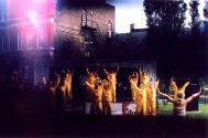 这一天,天空清澈,阳光明媚,很多人都来过节了。下午1点30分,我们在节日临时搭建的舞台上做了5套功法的演示。当我们走上舞台时,人群中响起了掌声;回头看去,人们齐刷刷的目光投向了我们。炼功音乐一起,人们立即安静下来了。在功法演示过程中,有人在台下跟着学,节日的吉祥物在催促孩子们跟我们一起做。一位弟子随着炼功音乐讲解着五套功法的动作,并在恰当的时机告诉了人们中国大陆大法修炼者遭受的残酷迫害,使其与现实中祥和、宁静的炼功场面形成了鲜明的对比。