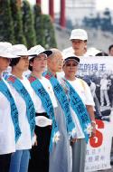 一位现年61岁,来自台北万华区的学员林桑娇女士,在出发前,面目祥和,却慈悲地哽咽:「我一想到在中国被迫害的学员,我就心痛。但我此刻感到非常快乐与幸福,对!能站在这里,挽救他们,我感到很幸福!」
