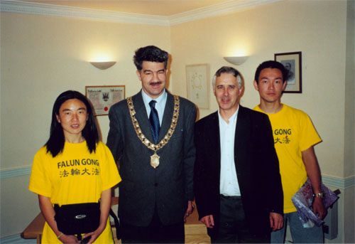 汤米问我们,是谁帮我们联系了电台,我们告诉他是芭芭拉女士。他说没准我认识她呢。汤米在国际特赦克拉凯尼小组作义务成员已经有很多年了,所以非常有经验。他说,我带你们去见一个议员,只是不知道他在不在。汤米开车带我们来到了议员约翰.米基尼斯的办公室。巧得是,约翰.米基尼斯先生正在办公。秘书告诉汤米你们自己上去吧,他在楼上。看得出汤米和他们的关系很好。约翰.米基尼斯先生请我们入坐后,仔细听我们介绍国内迫害的情况,而且非常关心赵明的处境。他说,以前也读过一些有关法轮功的报导和资料,但是总是没有今天和你们面对面地谈感到更加真切。他表示一定会想办法帮我们。他又问了汤米联系了当地的媒体了没有,汤米告诉他我们刚从电台出来,但是报社的记者在休假,只有主编一个人,正忙着采访艺术节,没时间来。米基尼斯议员说我来给他们打电话。他说着就拨响了他面前的电话,他终于把忙得团团转的摄影记者找到了,并约好了见面拍照的事。议员先生在得知我们下一站要去的地方是沃特福得的时候,就又跟沃特福得的电台打电话,给我们联系好了要找的人,可以接受采访。看见汤米和约翰议员如此设身处地替我们着想和服务,我们的心里岂止是感动两个字能形容的,真是人类的语言不够用了。