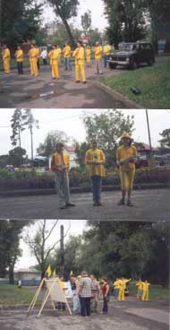 莫斯科大法弟子周末集体炼功洪法讲清真相(图)
