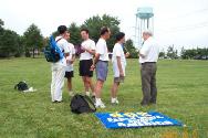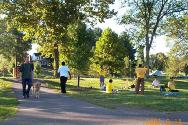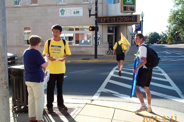 | Culpeper镇上,学员向当地居民介绍法轮功,讲清真相 | 学员在Culpeper镇的公园学法炼功,并派发传单 |