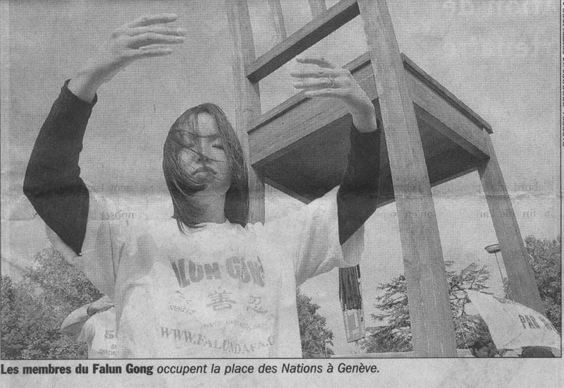 法轮功,中国精神运动的修炼者昨天开始进行为期三天的绝食活动,以声援在中国受到酷刑迫害的同修们。这次绝食活动在伯尔尼和苏黎世也同时进行。在日内瓦有十几名修炼者在联合国前的广场上开始这一绝食活动。
