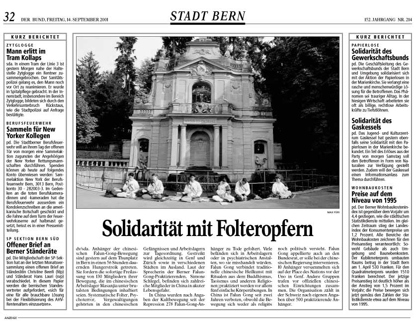 【明慧网2001年9月19日】瑞士联邦报社9月14日报道--