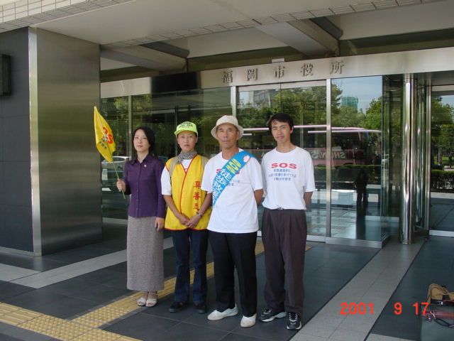由于昨天是星期天,政府各部门都休息,所以今天大家分两路,大部份人继续前行,另4人乘电车返回福冈市,在福冈学员的带领下前往福冈县、市政府的接待部门递交给县长和市长的SOS救援呼吁信。县市的工作人员都热情地接待了大家,听取了学员们对这次SOS活动的介绍,接受了来信,并答应帮助递交上去。