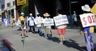 还有一位年仅7岁的小弟子也十分坚强,当距离目的地还有五英里时,小弟子已经蛮累了,但是他仍然坚持和大家走到了终点卡拉八卡斯市(Calabacas)。