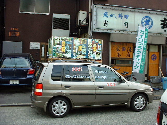 当我们下午去租小货车要把搭帐篷的材料和装好的图片运到场地时,开始下起倾盆大雨,刮起了大风。我们没有被其所动,按原定计划把东西运来。雨依旧很大,不时一阵阴风乱舞。几个男学员发完正念后,在风雨中搭第一个帐篷。两名女学员在车中持续发正念。几十分钟以后,第一个帐篷搭好了。风雨也小了。这时又来了几个学员。所有的学员齐心协力搭第二个帐篷。每个人的衣服都淋得透湿,加上风吹,凉得透骨。但学员心中的信念却越来越正,越来越清晰:一定要在今天晚上把帐篷搭起来,一定要让图片展明天开始,不能让邪恶得逞。