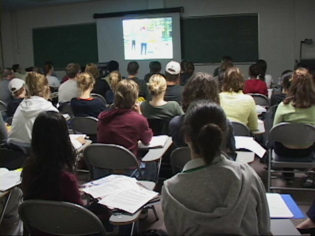 讲课过程中穿插放映的三部录像片收到很好的效果:“法轮功介绍”、“法轮功人权与迫害”、“紧急救援中国受迫害的法轮功学员”。
