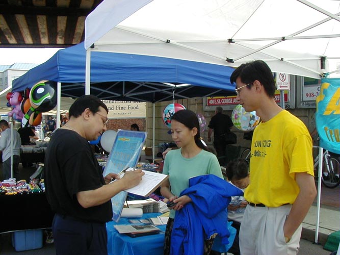 【明慧网2001年9月29日】9月22日,每年一度的新泽西州木桥市的集市热闹非凡。木桥市的人口排在新泽西的第五位,每年都有上万人从本市和邻近的城市光顾集市。