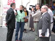 | 中国大使馆前 | 欧洲议会议员Marco Panella先生和学员在大使馆前 | 宣读给中国大使的公开信 |