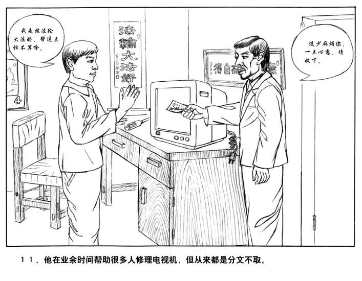 11、他在业余时间帮助很多人修理电视机,但从来都是分文不取。