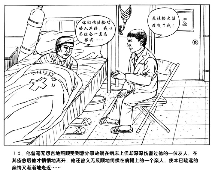 12、他曾毫无怨言地照顾受到意外事故躺在病床上但却深深伤害过他的一位友人,在其痊愈后他才悄悄地离开;他还曾义无反顾地侍候在病榻上的一个亲人,使本已疏远的亲情又渐渐的走近……