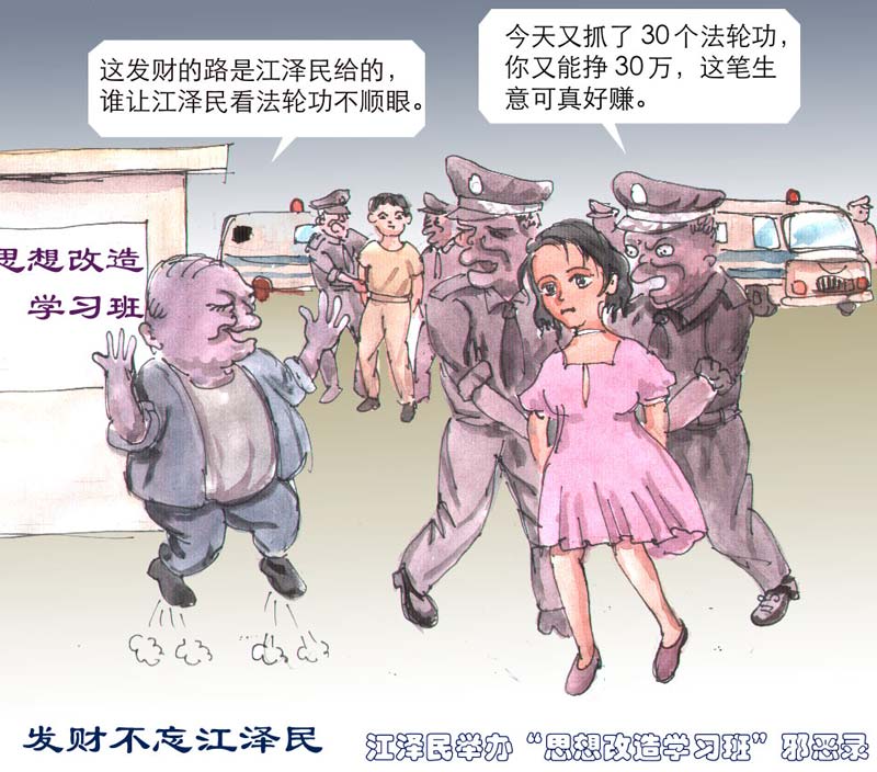 漫画:江泽民举办“思想改造学习班”邪恶录
