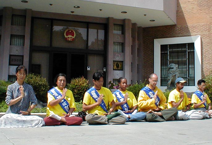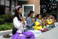 在公园,图书馆,大学和许多其它公共区域,都可以找到法轮功的炼功点。所有法轮功的活动都是义务的,免费对公众开放。要了解更多的情况,请访问他们的网站www。falundafa。org,或打1-877-FALUN99.你可以要求芝加哥城市官员采取行动要求沈阳市释放130名无辜的法轮功学员或写信给布什总统写表达你的关心……