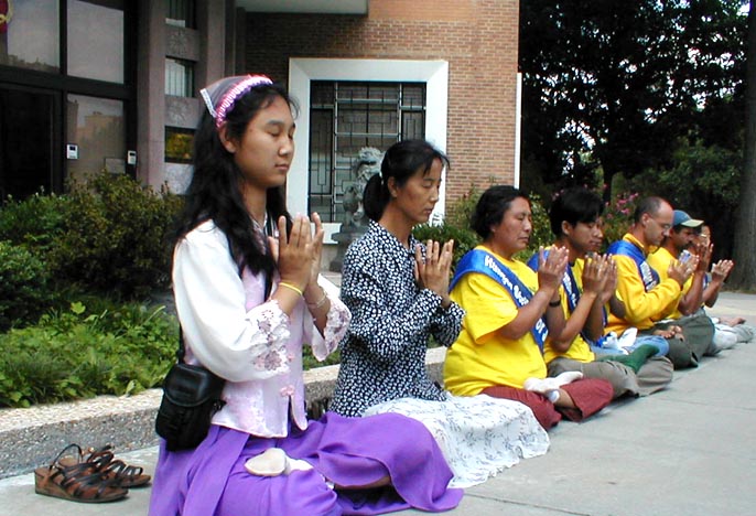叶谨:我在领馆前静坐,因为我知道中国镇压法轮功是错的,法轮功不象中国政府说的那样,他可以使修炼的人变成一个好人和一个健康的人,中国镇压法轮功已经使270多名大法弟子被迫害致死,还有上千的人被关押,所以我打算在中国领馆前静坐,我想让中国政府停止迫害法轮功和释放所有被关的大法弟子。