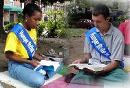 我们台湾学员最近分批到离岛洪法,澎湖啊、金门啊,还有绿岛。龙潭乡几位功友连续八个多月在山区洪法,经常骑摩托车到一百多公里外的偏僻山上发简介、讲清真相,被同修誉为「洪法特攻队」,其精神真是感人!从洪法的角度看,台湾人太有福气了,无论住在山巅或海边,都可以得到宇宙大法的讯息。您说是吗?