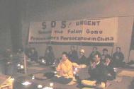11日晚上6点正,学员代表宣读了法轮功学员全球连续二日悼念行动及强烈谴责江泽民邪恶集团肆意杀害无辜的法轮功学员的声明。全体大法弟子三发正念清除着破坏大法的一切邪恶,场面威严。
