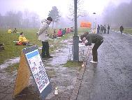 1月12日中午来自柏林,德累斯顿,马德堡,歌廷根等地的三十几位大法弟子冒着雨夹雪聚集在中国使馆前举行和平抗议活动。