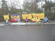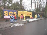 因为是休息日,路上行人不多,但是,每一位路人都愉快地接受了我们的真相传单,几乎人人都知道发生在中国的残酷镇压,并表示义愤。