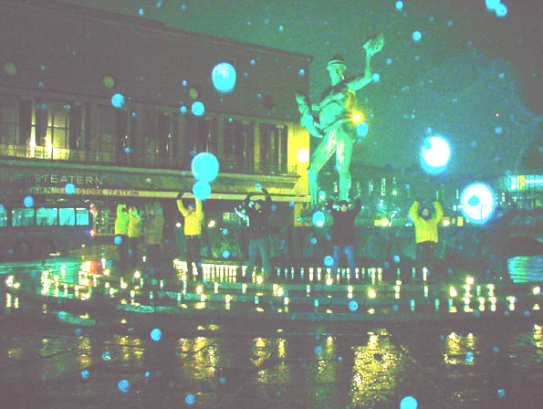 【明慧网2002年1月17日】2002年1月15日晚,瑞典大法弟子在哥德堡举行了烛光悼念活动。摇曳的烛光中无数的法轮在飞舞,预示着法正人间时刻的来临。