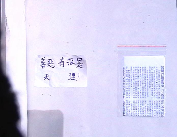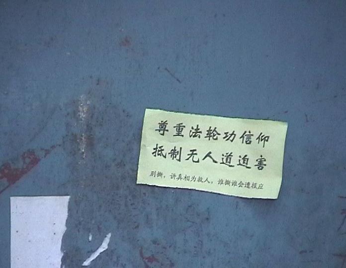 | 法院内外贴满了学员的传单(室外) | 法院内外贴满了学员的传单(窗户) | 法院内外贴满了学员的传单(法院公告栏) |