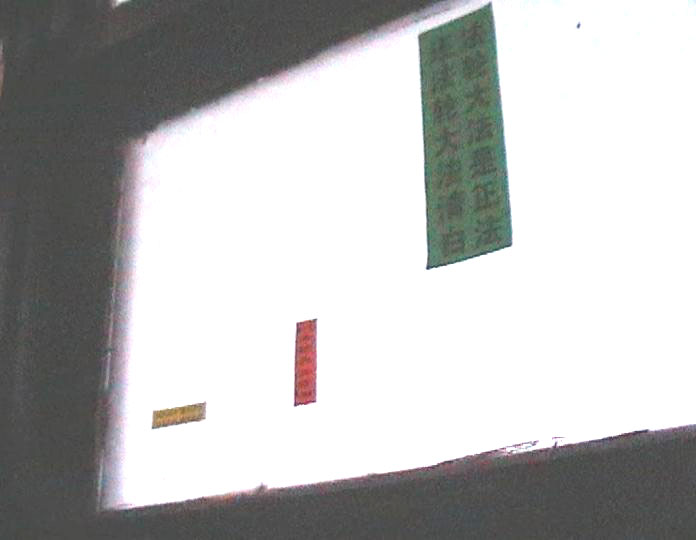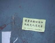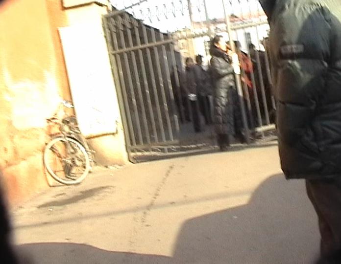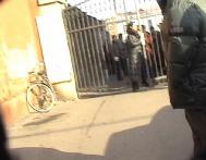 | 法院出口远景(押送学员的车由此门进出) | “我支持法轮功!”(一位看过公告栏上学员传单的老人大声说) | 一学员追着警车大声喊“法轮大法好” |