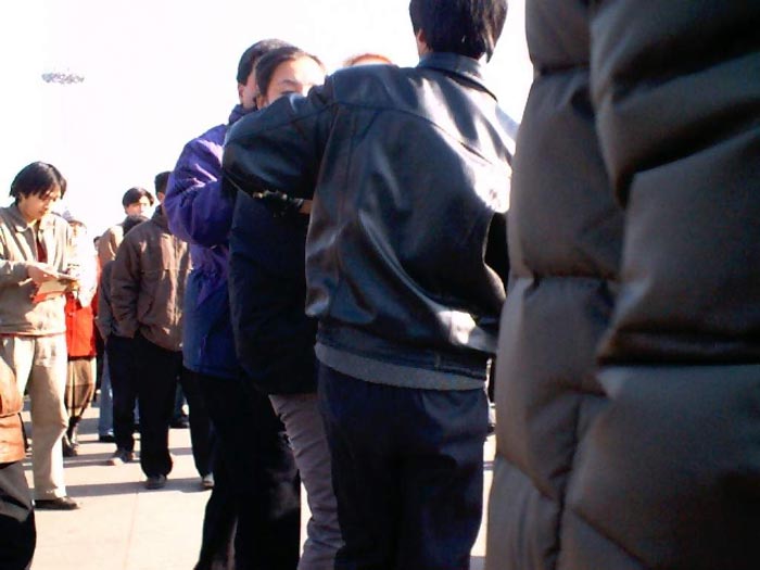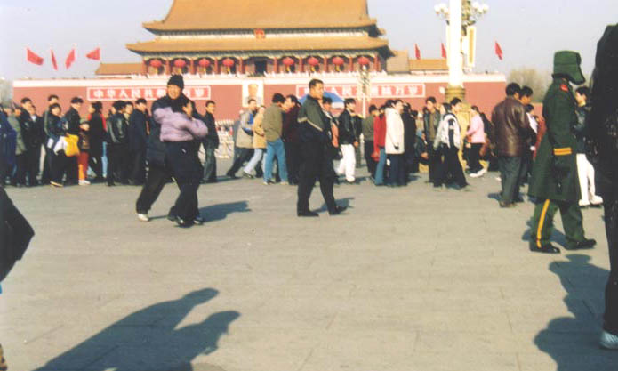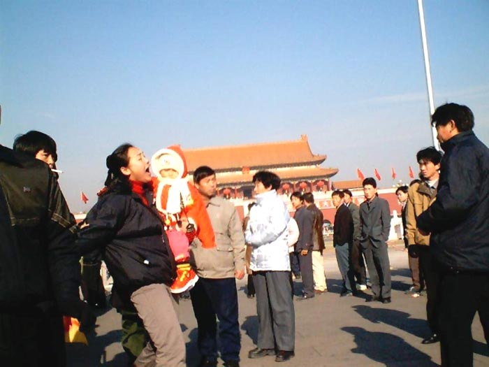 【明慧网2002年1月2日】我们是东北在京正法弟子,走上天安门是我们万古以来的誓愿。在法正人间即将到来之际,在黎明前最后一刻的黑暗里,我们怀着用生命唤醒世人的决心,怀着舍尽一切助师正法的决心,怀着对大法和师父的正信,以坚不可摧的正念走上了天安门。